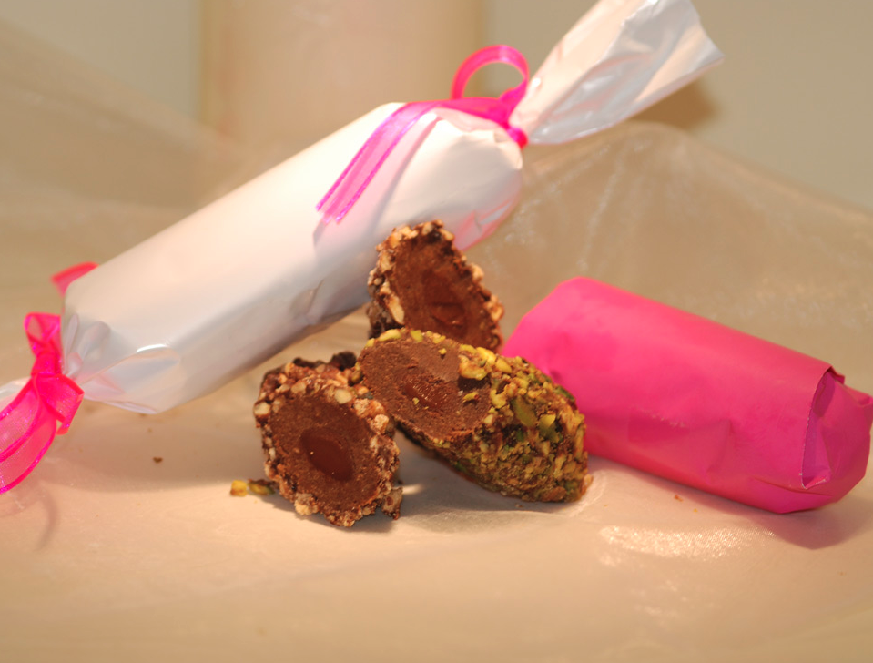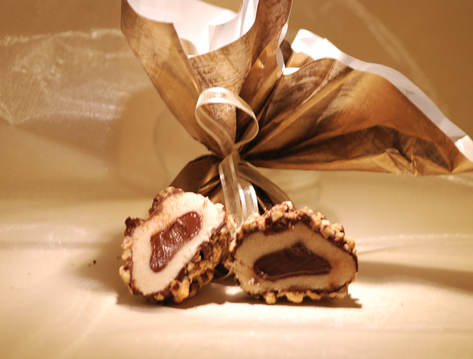 It was created especially for couples who want to offer something unique at reasonable prices. Its special feature is a filling of date and walnut, coated with coconut and drizzled with Belgian white chocolate.