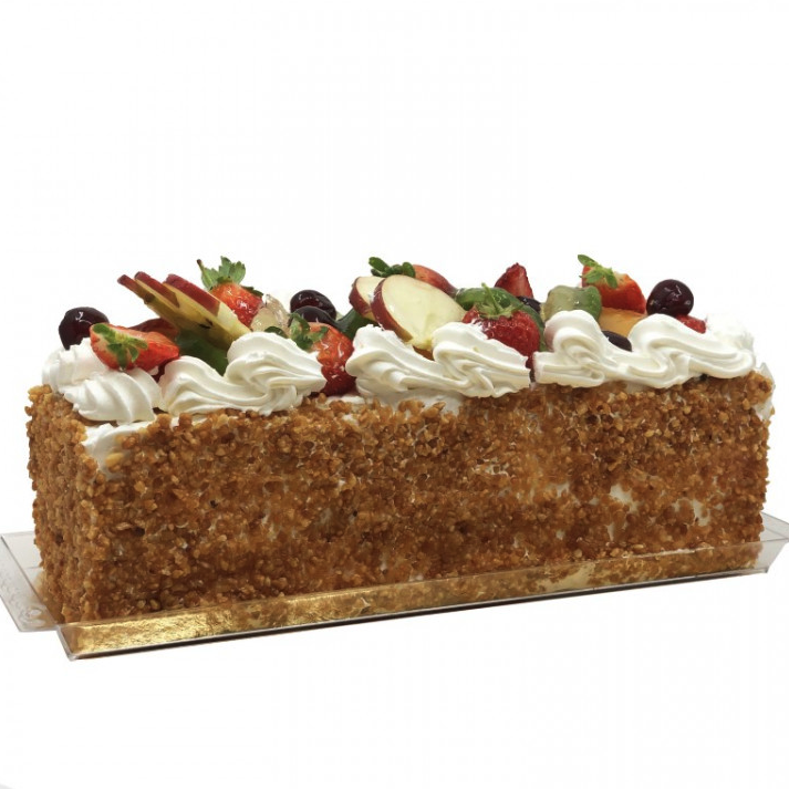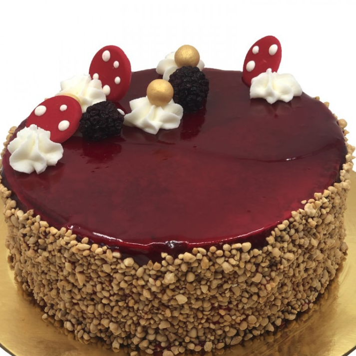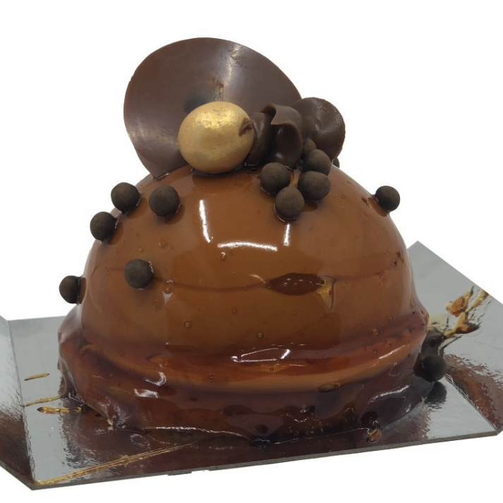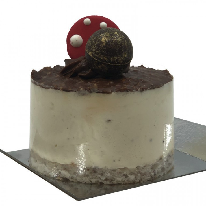 A blend of praline and creamy nougat, this cake combines refined sweetness with a delicate, melt-in-the-mouth texture.