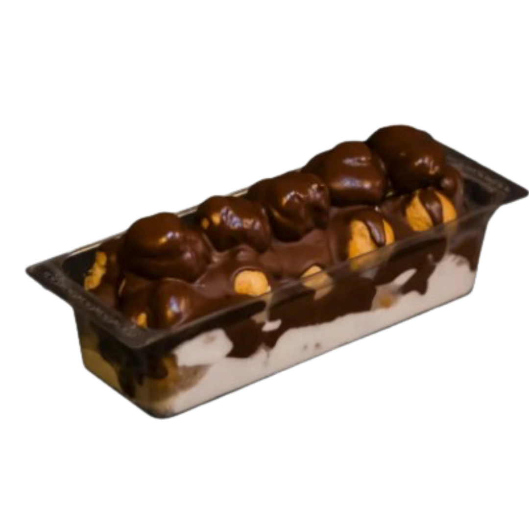 Inspired by classic profiteroles, it blends creamy filling with chocolate layers for a silky, indulgent result.